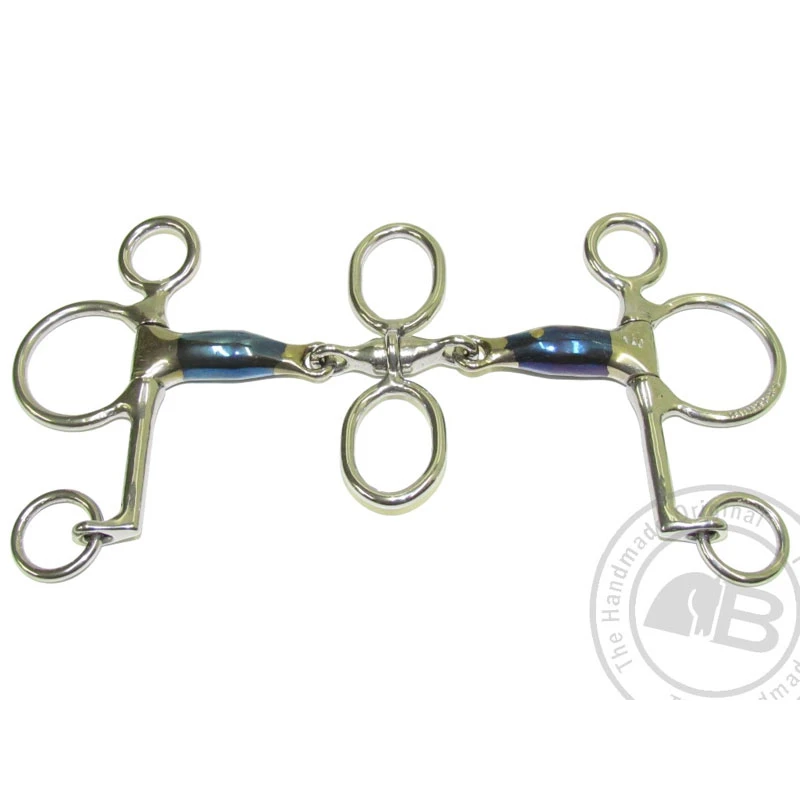 Bombers Bits Pelham Spinner 55 has attachments for two reins, one near the mouthpiece and one at the end of the shank.