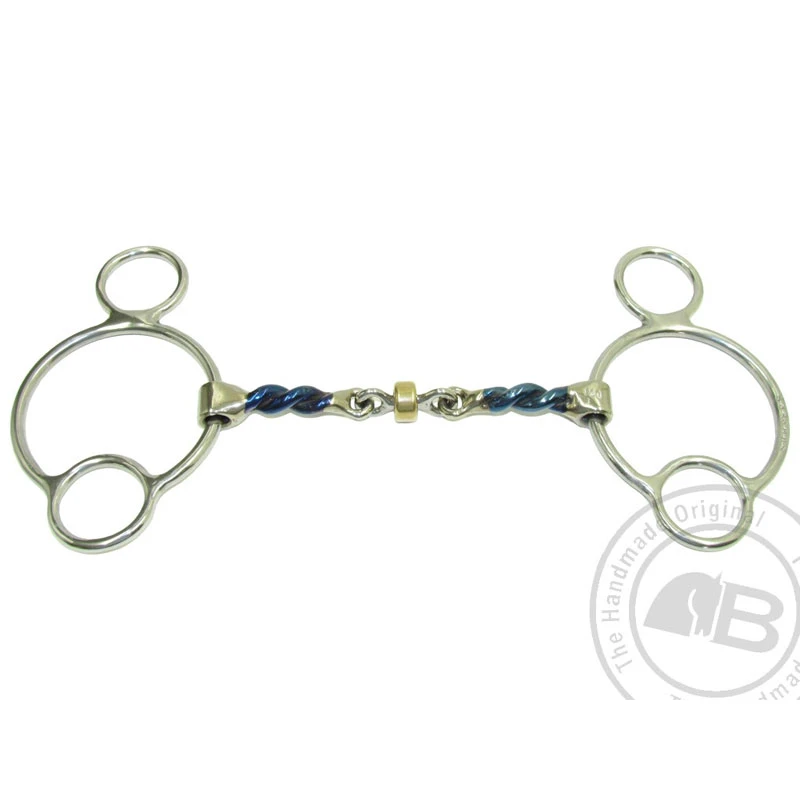 Bombers Bits Twisted Wire Buster Roller 2.5 Ring cheekpiece introduces poll pressure as well creating leverage on the mouthpiece. The 2½ Ring version is the softest version of ring bit as the ½ ring softens the leverage on the mouthpiece and poll.