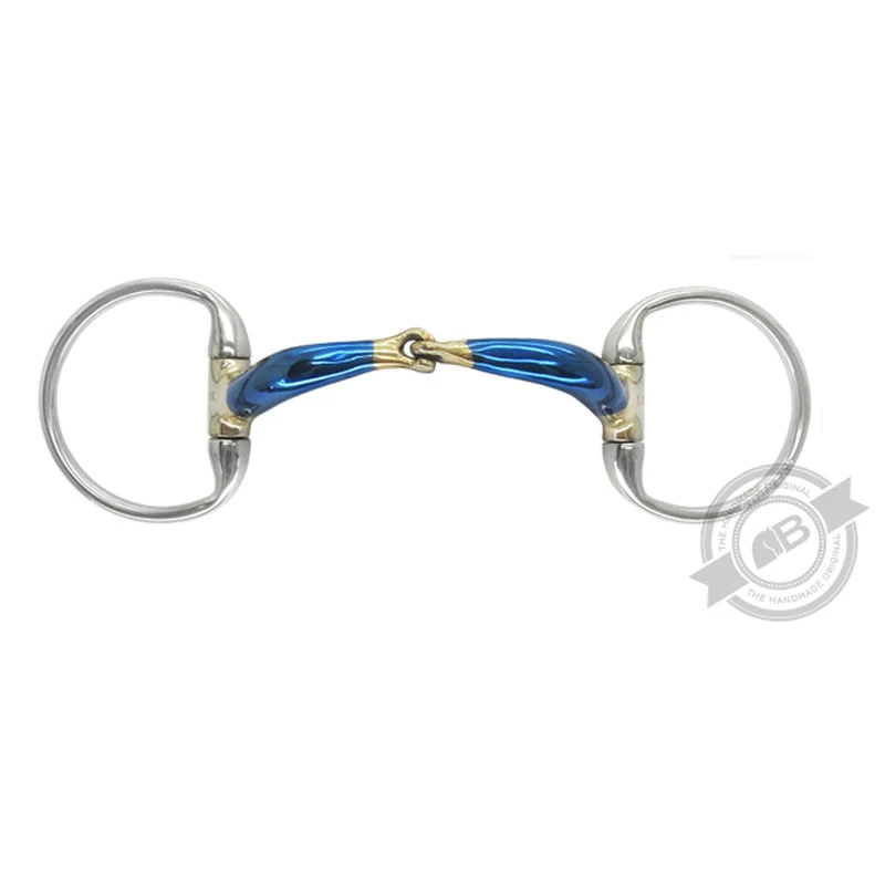 The blue sweet iron mouthpiece from Bombers Bits oxidises easily. Creates a warm, sweet taste that promotes salivation and acceptance of the bit.