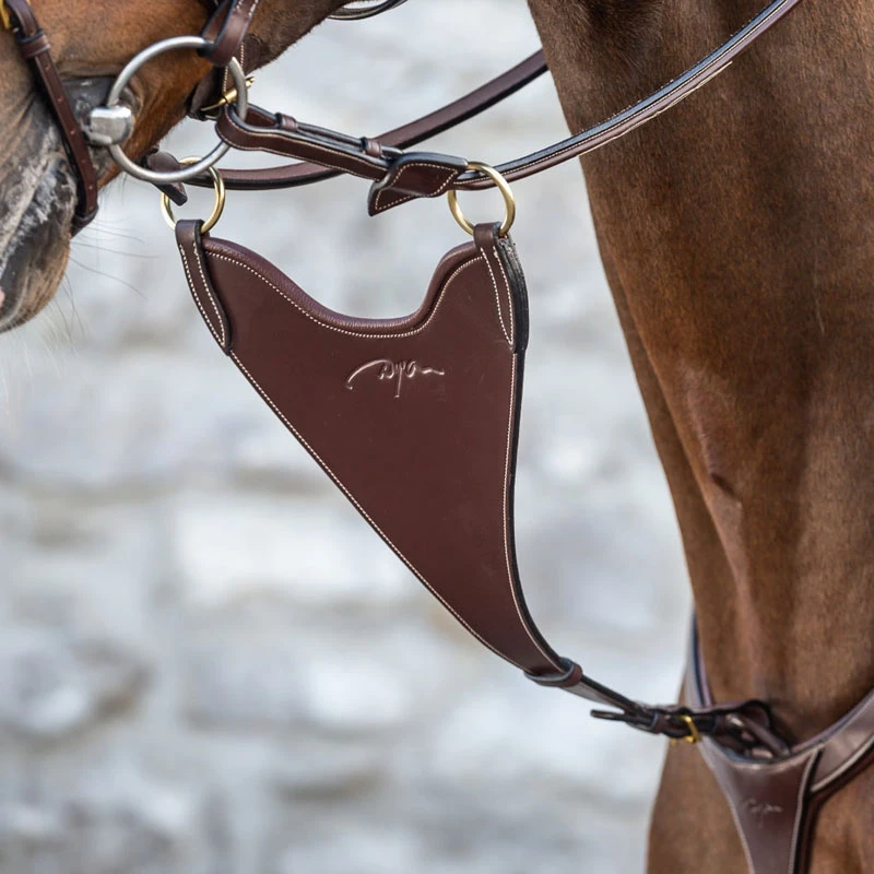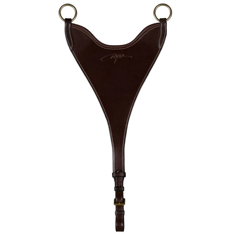 The Dy’on Hard Bib Martingale Attachment is attached to the Dy’on Breastplate or a Dy’on Yoke with its adjustable strap.