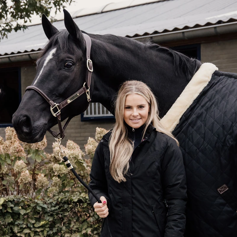 The NEW Kentucky Horsewear Show Rug – Black is as popular as the famous Navy show rug. Truly stunning. It fits perfectly with its contoured shape and stylish look. Tailor made for horses! It is a look any horse owner will be proud of. As usual. Lined with Kentucky’s famous faux rabbit fur creates tiny air pockets. This traps air and therefore retains the body heat from the horse. Luxurious soft artificial rabbit skin lining prevents rubbing.