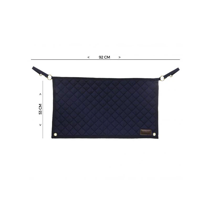 The Kentucky Stable Guard uses 600D High Tenacity Polyester. As a result, this makes the stall guard strong and durable to a horses weight. All corners have been fitted with brass gold coloured rings.