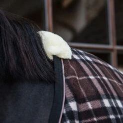 The withers are protected by artificial sheepskin which is stitched to the edge of the rugs. This gives a soft and luxurious feel, that also helps prevent any rubbing of the mane.