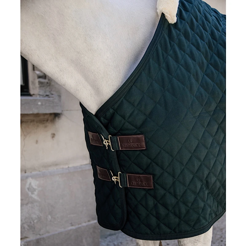The Stable Rug is very strong and durable providing maximum warmth to weight ratio at 400 grams per square meter of fibre fill. The three layered diamond quilting pattern really provides untouched durability. At 400 grams, the Kentucky Stable Rug is the perfect choice as the temperature drops. Remember that the faux fur, creates the tiny air pockets which more up against your horses body. Pure Luxury!