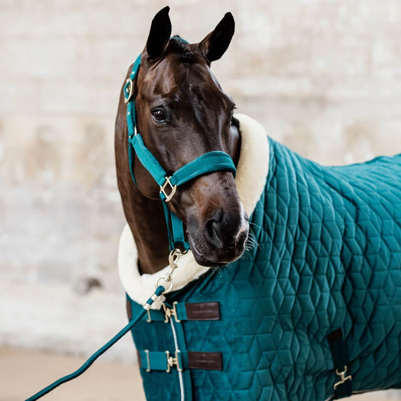 With the Show Rug Velvet you will for sure stand out in the stables. The rug has a 160g filling and is perfect during winter to use as a stable rug at home or at shows. The outside of the rug has a soft and chic velvet fabric and a sophisticated quilted layer. The cube quilted layer makes it a lot harder for horses to tear the rug. The inside of the rug has an artificial rabbit skin lining, that avoids rubbing marks. The artificial rabbit skin also creates tiny air pockets that create an isolated layer around your horse and keeps him extra warm.
