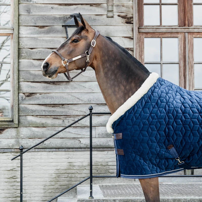 With the Show Rug Velvet you will for sure stand out in the stables. The rug has a 160g filling and is perfect during winter to use as a stable rug at home or at shows. The outside of the rug has a soft and chic velvet fabric and a sophisticated quilted layer. The cube quilted layer makes it a lot harder for horses to tear the rug. The inside of the rug has an artificial rabbit skin lining, that avoids rubbing marks. The artificial rabbit skin also creates tiny air pockets that create an isolated layer around your horse and keeps him extra warm.