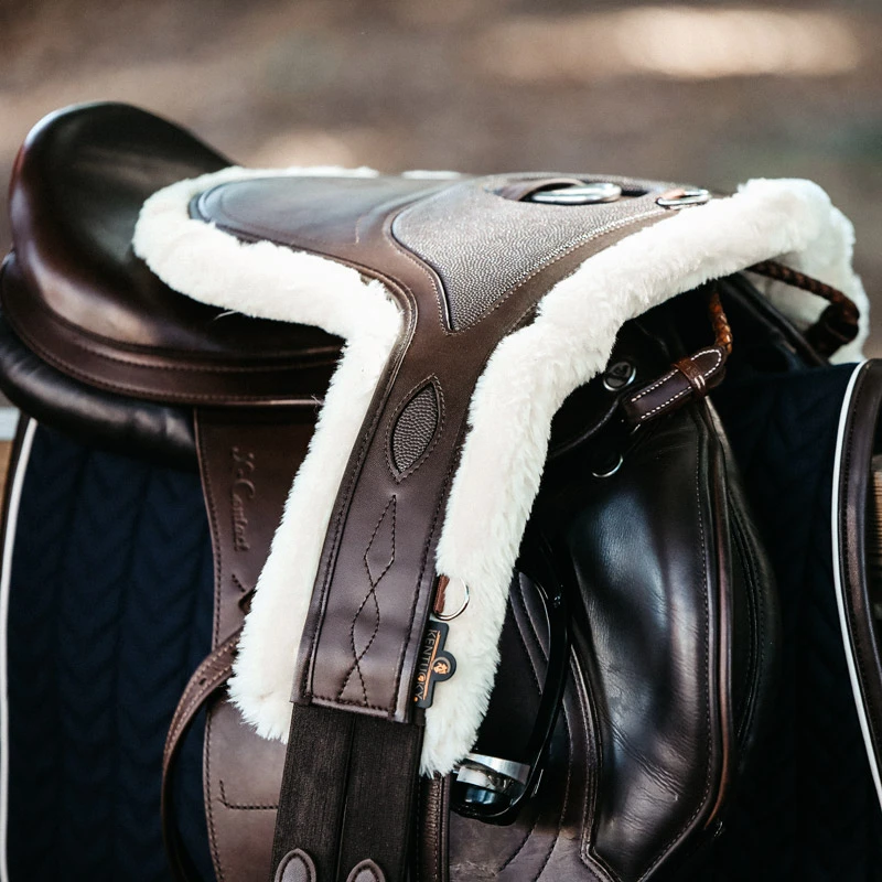 This girth is made out of artificial sheepskin and leather. The artificial sheepskin offers excellent cushioning against sensitive skin. Thanks to the Velcro on the other side of the sheepskin cover, it can be easily taken off and changed. The artificial leather doesn’t take in any dirt, sweat or water and is therefore more durable. Moreover, it does not change color or get damaged easily. Artificial leather and sheepskin are easy to maintain as they are specially made to sustain the washing machine at 30° (no dryer).