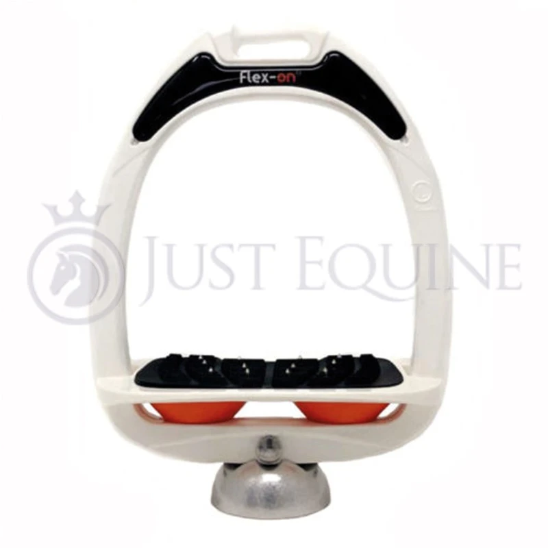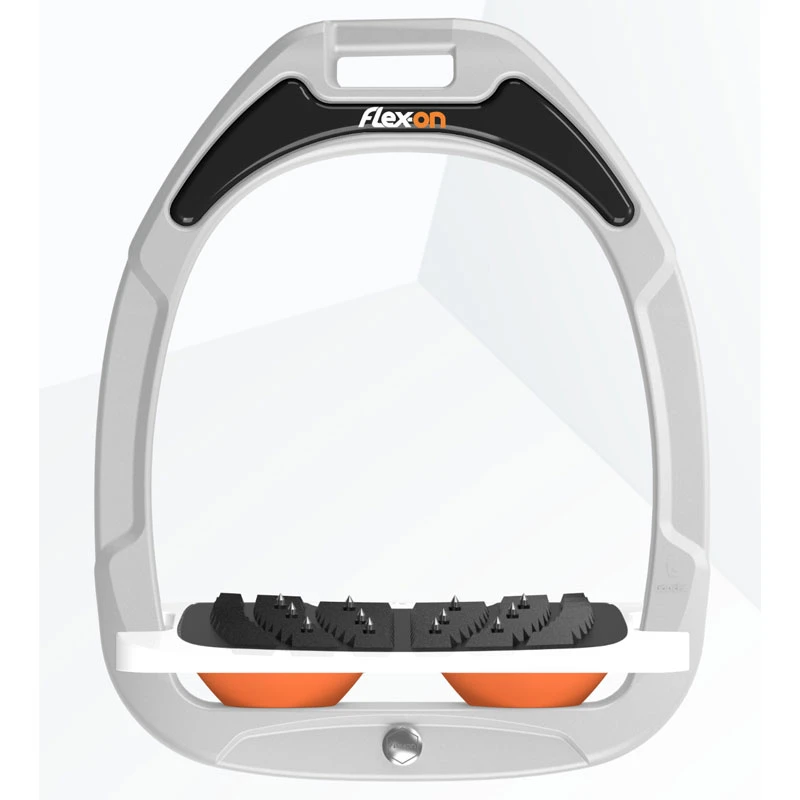 The Flex On Stirrups White White Orange with Ultra Inclined Grip use innovative shock absorption technology to cushion the movements of the rider. Flex-On stirrups dramatically improve technical performance in terms of shock absorption. A new generation show jumping stirrup that has proven popular with professional riders. Flex On Stirrups White White Orange offer superb comfort for riders young and old. Easy to customize, to the color of your choice, although this must be done at time of purchase.