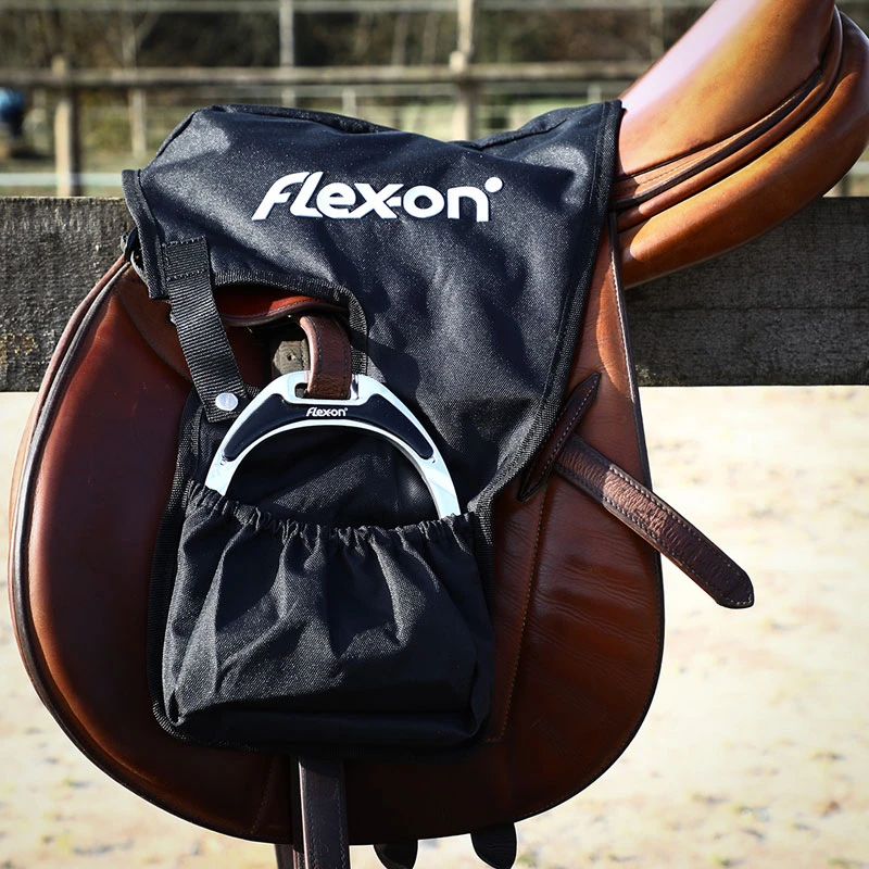 Your Flex-On Stirrups sit neatly in the stirrup covers which are elasticated to hold the stirrups in position. Styled in a trendy black and white design with the Flex On logo, these stirrup covers really are the business.