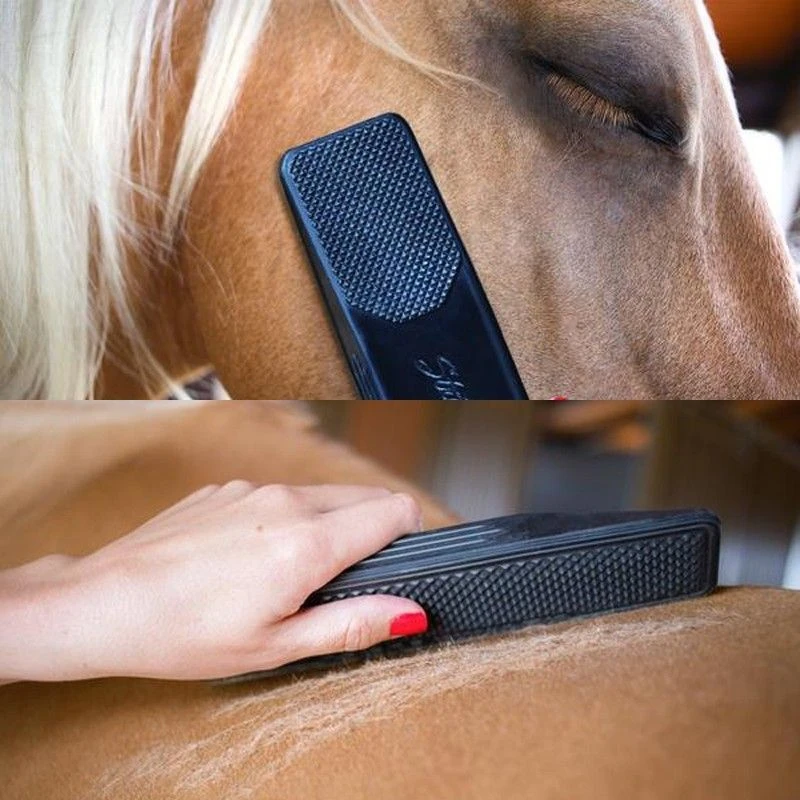 This special design offers unlimited uses to groom your horse or larger dog. Use as a curry comb and to add shine to your horses coat.,Great to use as the new coat begins to shed. To shampoo and massage. All in one, easy to use grooming tool.