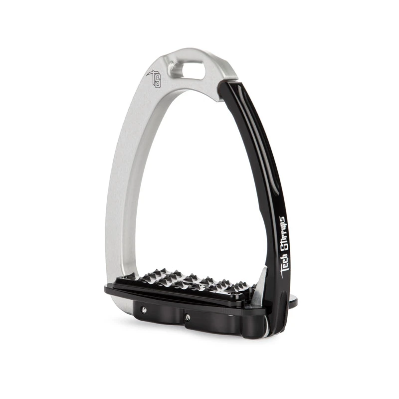 Compared to the Tech Venice Evo stirrups, which have a flat tread, this model with the sloped tread, has an angled tread at 2.5 degrees. As a result this is support a better jumping position.