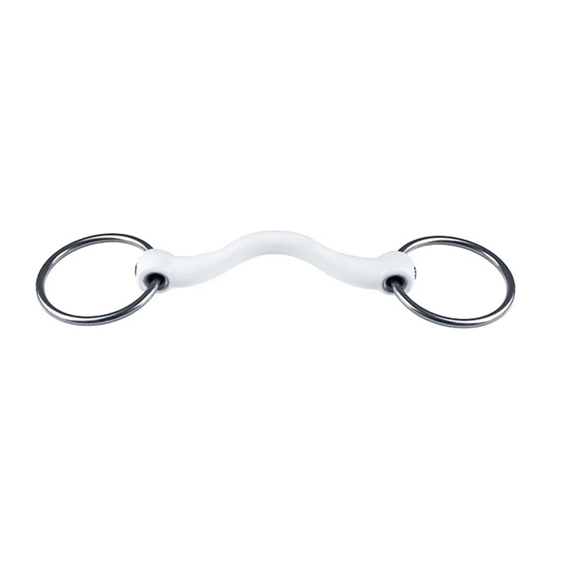 The mouthpiece is made with a synthetic material that has been approved by the FDA for use and as a result contains no plasticizers. The loose ring allows the bit to move in the horses mouth so that the horse can find the most comfortable position.